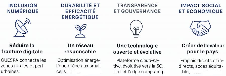 Chez GUESPA, nous croyons qu’une connectivité durable et inclusive repose sur des engagements concrets et qu’une transformation numérique doit être à la fois technologique, économique et humaine.